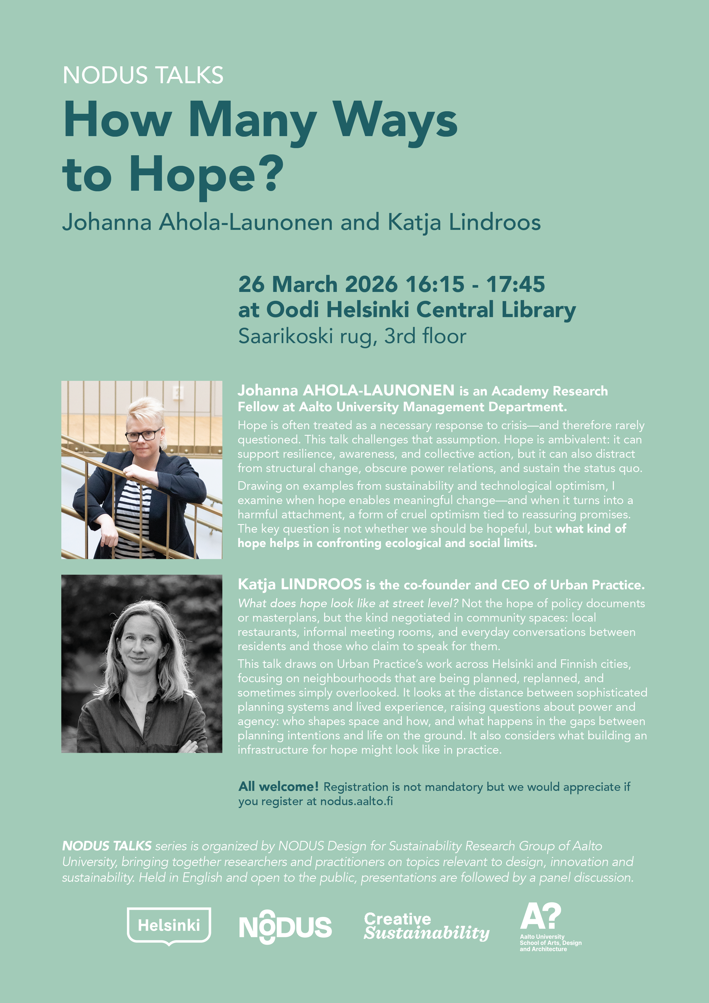 This talk draws on Urban Practice’s work across Helsinki and Finnish cities, focusing on neighbourhoods that are being planned, replanned, and sometimes simply overlooked. It looks at the distance between sophisticated planning systems and lived experience, raising questions about power and agency: who shapes space and how, and what happens in the gaps between planning intentions and life on the ground. It also considers what building an infrastructure for hope might look like in practice.